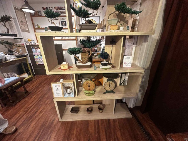 店内には個性豊かな盆栽が並び、サイズも様々です。