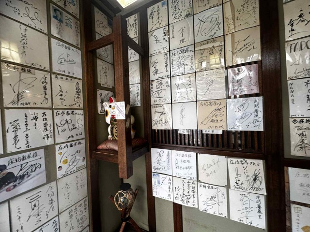 店内入り口にはサイン色紙が所狭しと貼られています。