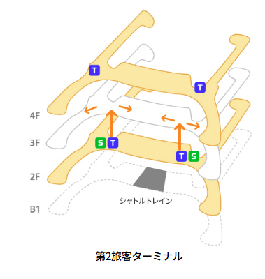 しかし、大韓航空は第2ターミナルに離発着するためターミナル移動の必要はありません。
