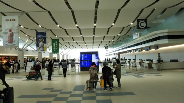 新千歳空港の国際線チェックインの様子はこちらの記事で詳しく説明しています。