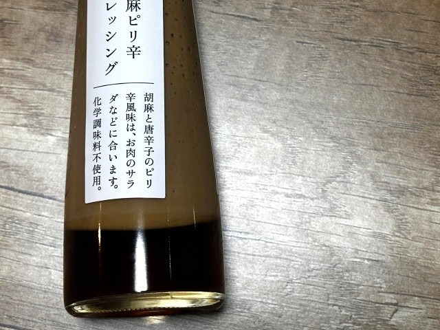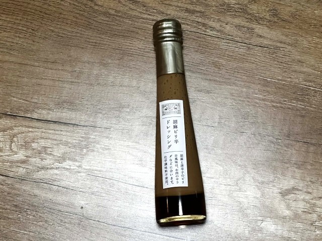 高級感漂うお洒落なボトルに入った「胡麻ピリ辛ドレッシング」